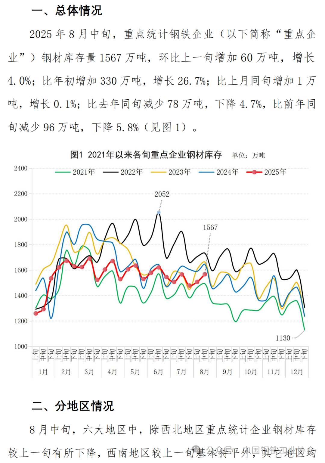2025年8月中旬重點(diǎn)企業(yè)鋼鐵庫存旬報(bào)