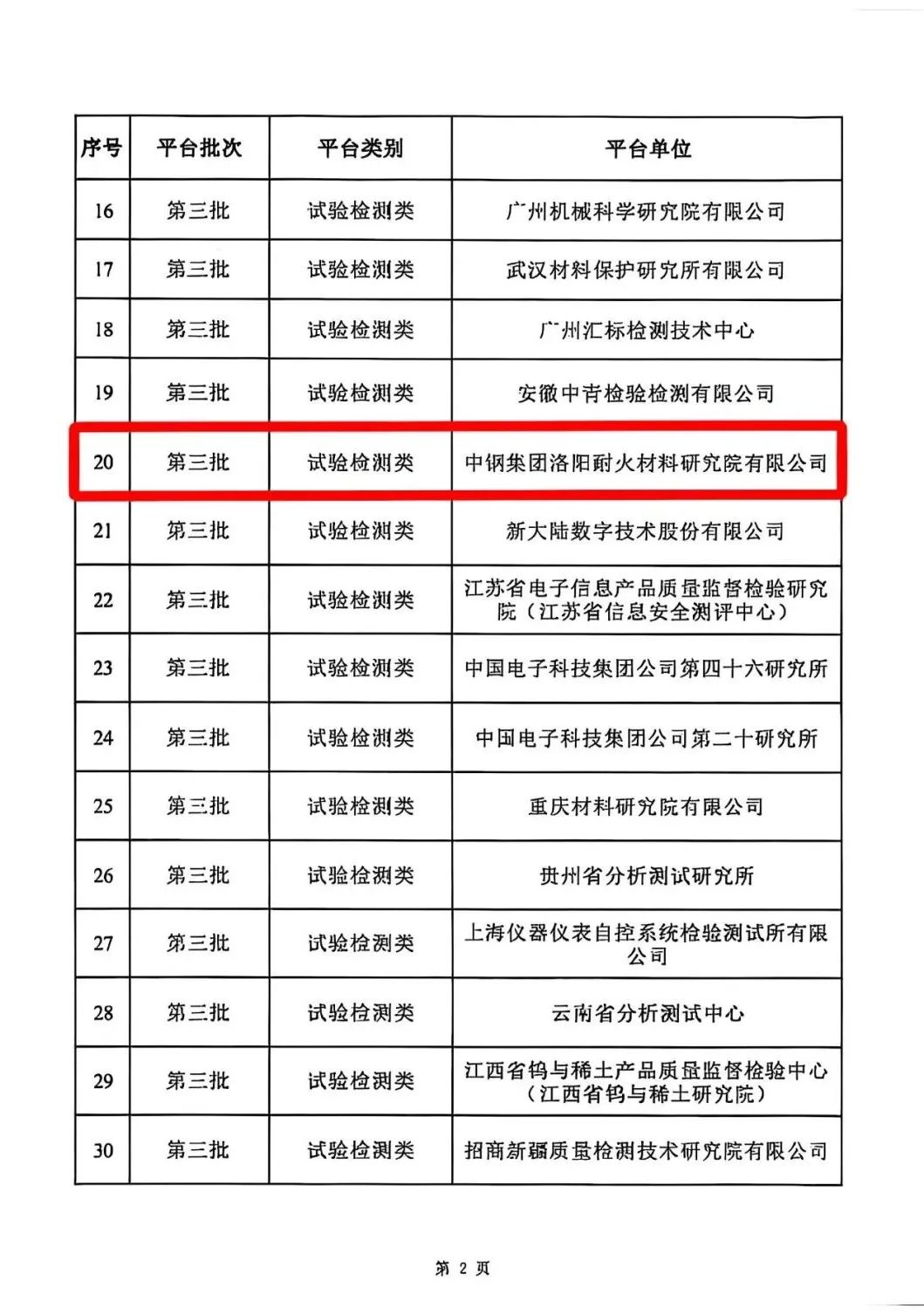 近日,工業(yè)和信息化部辦公廳公布《關(guān)于通過復(fù)核的第二、三、五批產(chǎn)業(yè)技術(shù)基礎(chǔ)公共服務(wù)平臺名單的通知》,依托中鋼洛耐院建設(shè)的耐火材料產(chǎn)業(yè)技術(shù)基礎(chǔ)公共服務(wù)平臺(省部共建)順利通過2025年復(fù)核。