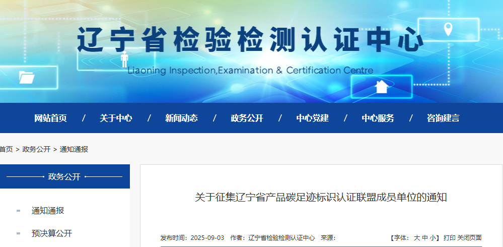 為全面落實黨中央、國務院關于碳達峰碳中和重大決策部署,不斷提升我省產(chǎn)品碳足跡管理水平,加快推動我省重點產(chǎn)業(yè)綠色低碳轉(zhuǎn)型與高質(zhì)量發(fā)展,按照《市場監(jiān)管總局等部門關于開展產(chǎn)品碳足跡標識認證試點工作的通知》(國市監(jiān)認證發(fā)〔2024〕124號)以及《關于印發(fā)遼寧省產(chǎn)品碳足跡標識認證試點工作方案的通知》等文件要求,遼寧產(chǎn)品碳足跡標識認證聯(lián)盟(以下簡稱“聯(lián)盟”)正式啟動會員征集工作?,F(xiàn)將有關事項通知如下: