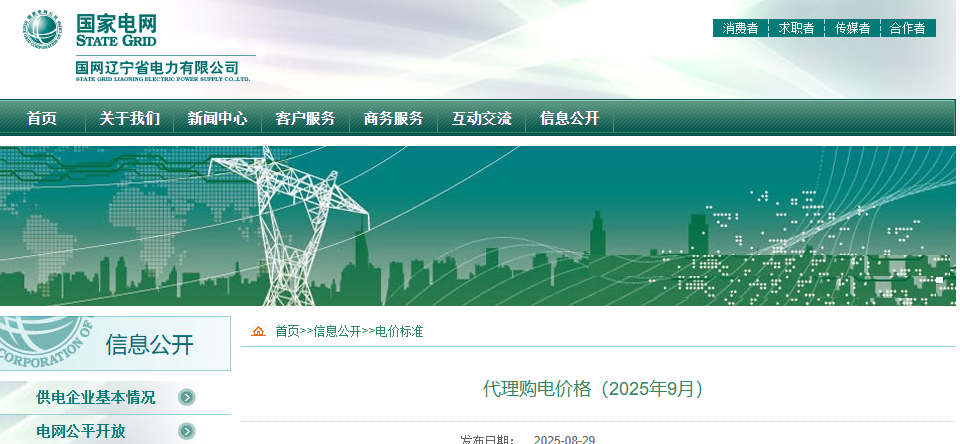 國(guó)網(wǎng)遼寧省電力有限公司代理購(gòu)電工商業(yè)用戶電價(jià)表(2025年9月)