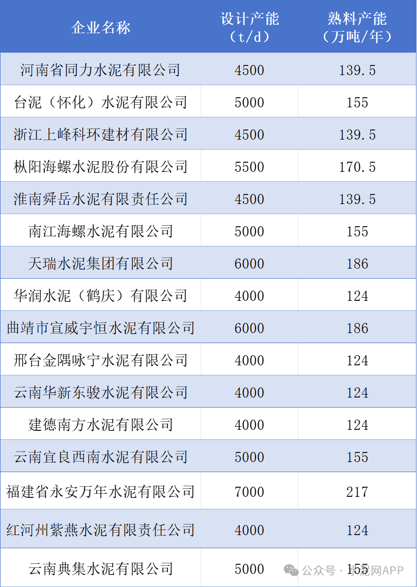 據(jù)統(tǒng)計,今年以來,已有16條水泥熟料生產(chǎn)線建設(shè)項目不再推進,合計年產(chǎn)能2418萬噸(按照310天計算),詳情見下表: