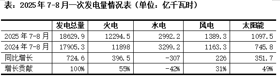 ★新能源替代效應(yīng)大為增強(qiáng)七、八月份,與火電裝機(jī)容量基本相當(dāng)?shù)男履茉闯隽φ?dāng)時(shí),風(fēng)電、太陽能發(fā)電等新能源裝機(jī)的新增發(fā)電量不僅彌補(bǔ)了水電下降帶來的供應(yīng)缺口,還在很大程度上滿足了全社會用電量增長的需求(同比增長3.7%)。這從國家統(tǒng)計(jì)局發(fā)布的一次發(fā)電量情況表中可以清楚的看出來。