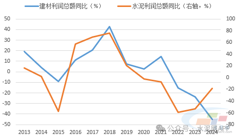 從近12年數(shù)據(jù)看,水泥行業(yè)利潤總額同比走勢與建材整體基本一致,2022-2024年,水泥行業(yè)利潤大幅下滑,是拖累建材行業(yè)連續(xù)三年持續(xù)下降的主要因素,因此水泥實現(xiàn)穩(wěn)增長對整個建材行業(yè)穩(wěn)增長至關(guān)重要。