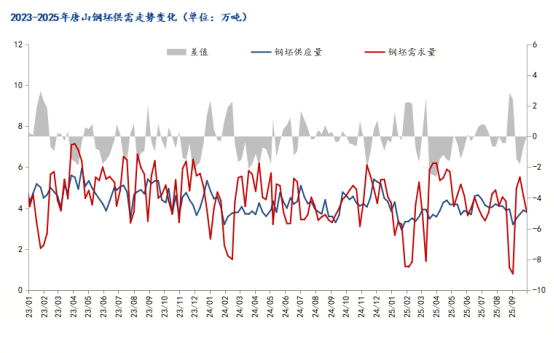 圖六:2023-2025年唐山鋼坯供需走勢(shì)變化