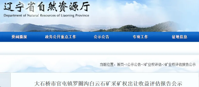 大石橋市官屯鎮(zhèn)羅圈溝白云石礦采礦權(quán)出讓收益評(píng)估報(bào)告通過(guò)遼寧省自然資源廳門戶網(wǎng)站向社會(huì)公示,公示10個(gè)工作日。如有異議,請(qǐng)于公示之日起10個(gè)工作日內(nèi)以電話方式先向省自然資源廳礦產(chǎn)資源保護(hù)監(jiān)督處提出簡(jiǎn)要意見(jiàn),隨后及時(shí)將書(shū)面意見(jiàn)反饋到省自然資源廳礦產(chǎn)資源保護(hù)監(jiān)督處。
