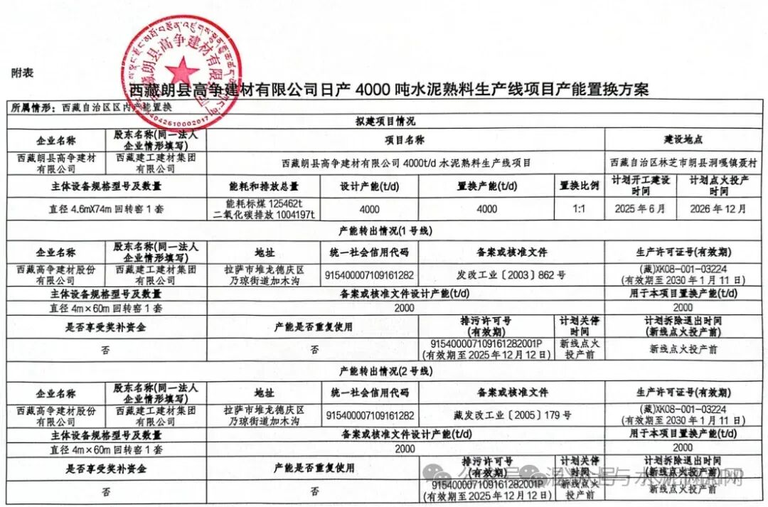 近日,西藏天路發(fā)布三季報,其中提到,2025年1月,公司控股子公司西藏高爭建材股份有限公司(持股51%)與西藏藏建水泥有限公司(持股 25%)、林芝市城市投資有限責(zé)任公司(持股13%)、朗縣城市投資有限責(zé)任公司(持股11%)共同成立了“西藏朗縣高爭建材有限公司”,注冊資本3500萬元,對外投資構(gòu)成的關(guān)聯(lián)交易事項已經(jīng)公司總經(jīng)理辦公會審議通過。目前,西藏朗縣高爭建材有限公司通過自治區(qū)區(qū)內(nèi)產(chǎn)能置換方式在林芝市朗縣建設(shè)一條4000t/d水泥熟料生產(chǎn)線項目,已完成用地預(yù)審、產(chǎn)能置換、項目備案、農(nóng)用地轉(zhuǎn)建設(shè)用地以及礦山“兩報告一方案”評審等工作。西藏朗縣高爭建材有限公司正在辦理環(huán)評、土地使用權(quán)出讓等審批程序。據(jù)悉,4月23日,西藏經(jīng)信廳發(fā)布“關(guān)于西藏朗縣高爭建材有限公司4000t/d水泥熟料生產(chǎn)線項目產(chǎn)能置換方案的公示”。