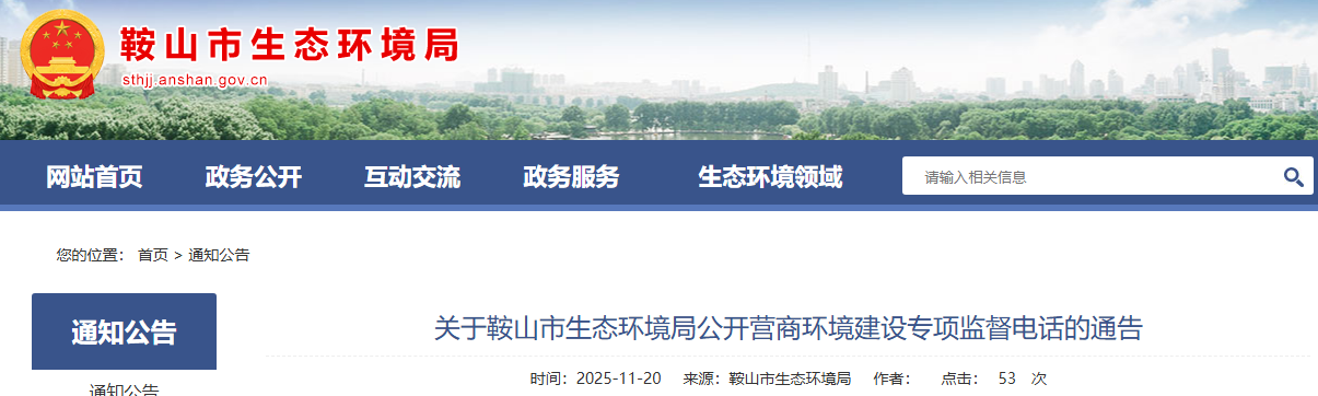 為進(jìn)一步暢通監(jiān)督渠道,鞍山市生態(tài)環(huán)境局設(shè)立營(yíng)商環(huán)境建設(shè)專項(xiàng)監(jiān)督電話,廣泛收集相關(guān)問(wèn)題線索。對(duì)于企業(yè)及市民在生產(chǎn)生活中發(fā)現(xiàn)的生態(tài)環(huán)境領(lǐng)域落實(shí)政策規(guī)定打折扣、搞變通、人為設(shè)置障礙;對(duì)待群眾訴求態(tài)度生硬、推諉扯皮、敷衍塞責(zé);利用職權(quán)或工作之便“吃拿卡要”等問(wèn)題,歡迎予以反映,我們將堅(jiān)持“零容忍”態(tài)度,堅(jiān)決查處,絕不姑息。