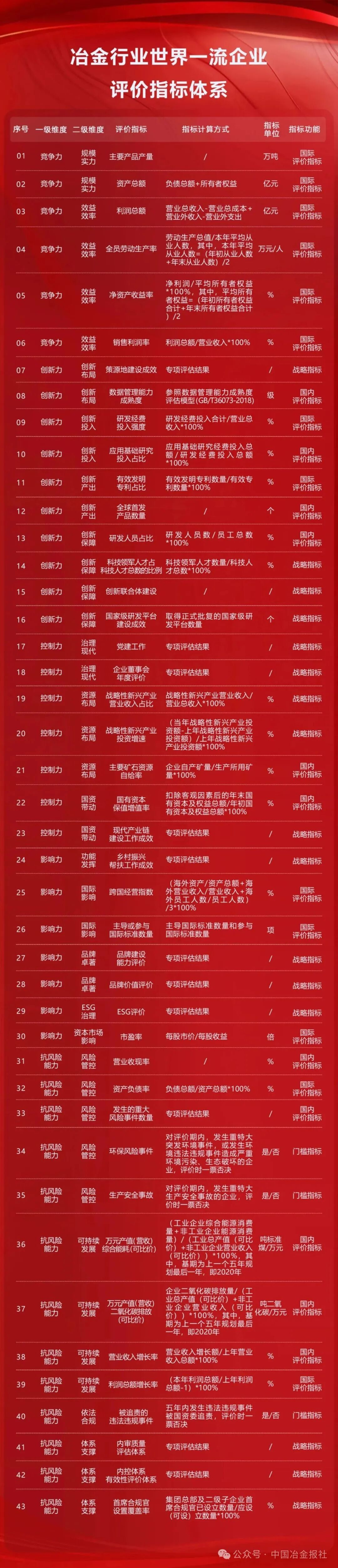 其中,冶金行業(yè)世界一流企業(yè)評價指標(biāo)體系如下: