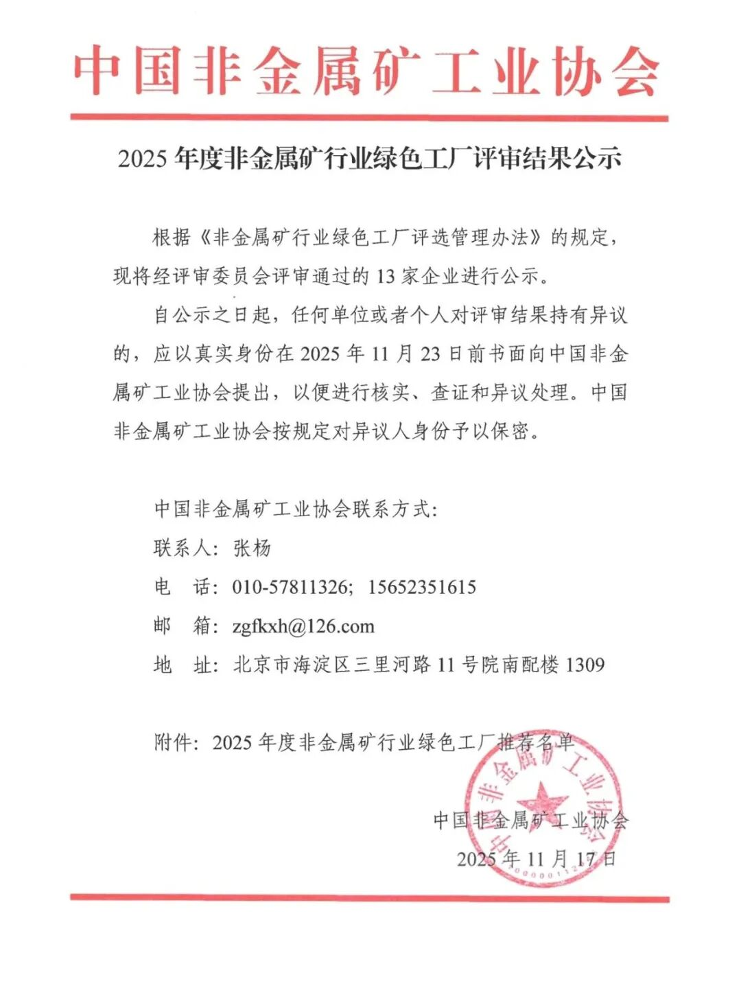 2025年度非金屬礦行業(yè)綠色工廠評審結果公示
