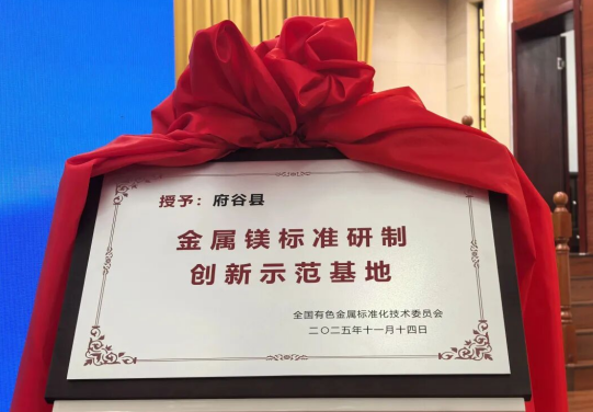2025年11月14日,“府谷鎂產(chǎn)業(yè)高質量發(fā)展專家委員會”成立大會在府谷縣隆重召開。會上,全國有色金屬標準化技術委員會正式授予府谷縣“金屬鎂標準研制創(chuàng)新示范基地”稱號,為鎂產(chǎn)業(yè)標準化、高質量發(fā)展注入強勁動力。