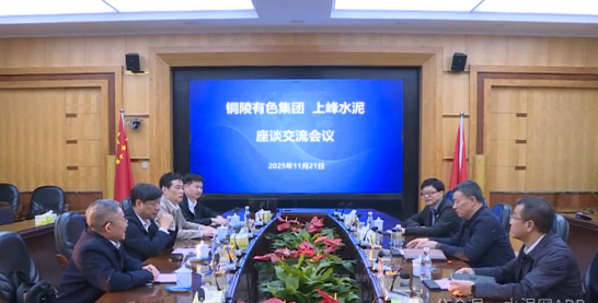 11月21日下午,銅陵有色黨委書記、董事長、總經理丁士啟在公司會見上峰水泥董事長俞鋒一行并座談。
