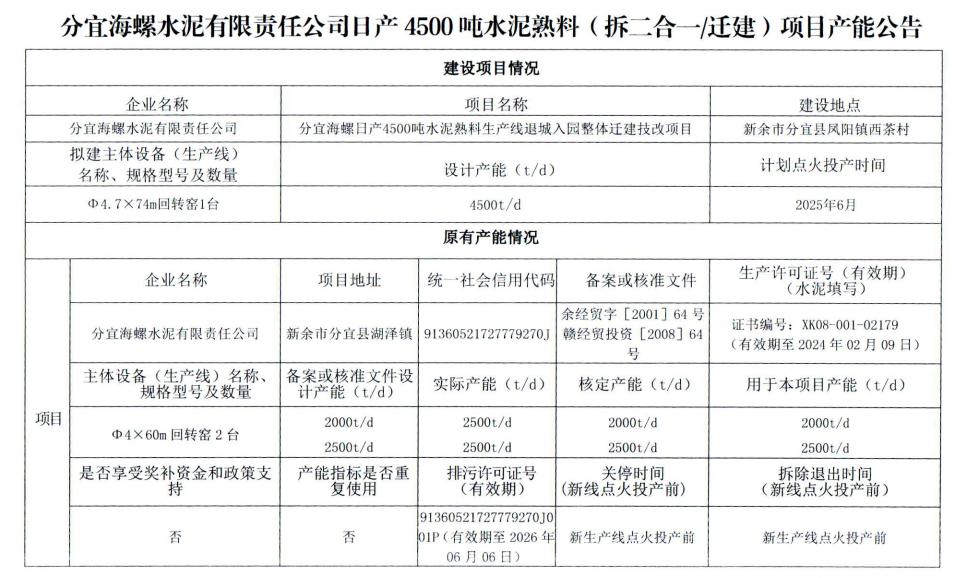 據(jù)江西工信廳,分宜海螺水泥置換項(xiàng)目情況如下: