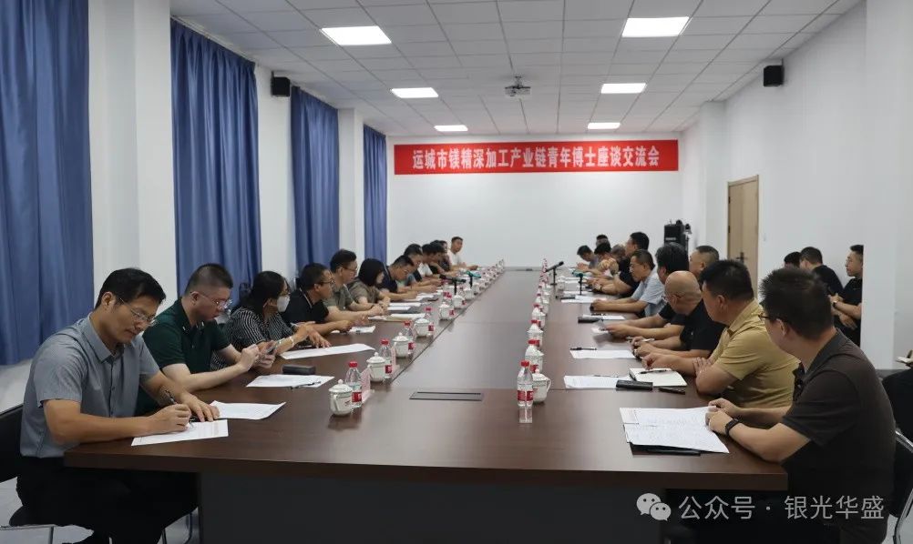2024 年 8 月 17 日,青年博士河?xùn)|行暨運(yùn)城市鎂精深加工產(chǎn)業(yè)鏈座談交流會(huì)在山西銀光華盛鎂業(yè)有限公司創(chuàng)新中心會(huì)議室召開,運(yùn)城市縣有關(guān)領(lǐng)導(dǎo)以及 8 家金屬鎂企業(yè)代表共同出席了本次座談會(huì)。