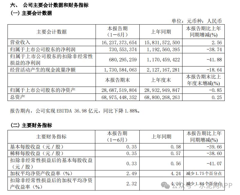 8月30日,華新水泥(06655)發(fā)布截至2024年6月30日止半年度業(yè)績(jī),該集團(tuán)期內(nèi)取得營(yíng)業(yè)總收入162.37億元,同比增加2.56%;歸母凈利潤(rùn)7.31億元,同比減少38.74%;基本每股收益0.35元。