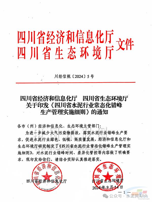 9月14日,四川省經(jīng)濟(jì)和信息化廳 四川省生態(tài)環(huán)境廳印發(fā)《四川省水泥行業(yè)常態(tài)化錯峰生產(chǎn)管理實施細(xì)則》(簡稱:《細(xì)則》)。