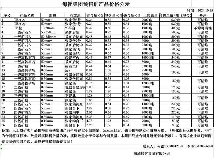 海鎂集團預售礦產品價格公示
