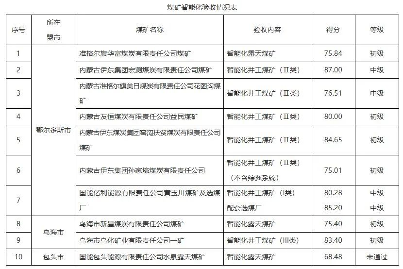內(nèi)蒙古自治區(qū)能源局關(guān)于準(zhǔn)格爾旗華富煤炭有限責(zé)任公司煤礦等10處煤礦智能化驗(yàn)收結(jié)果的公示