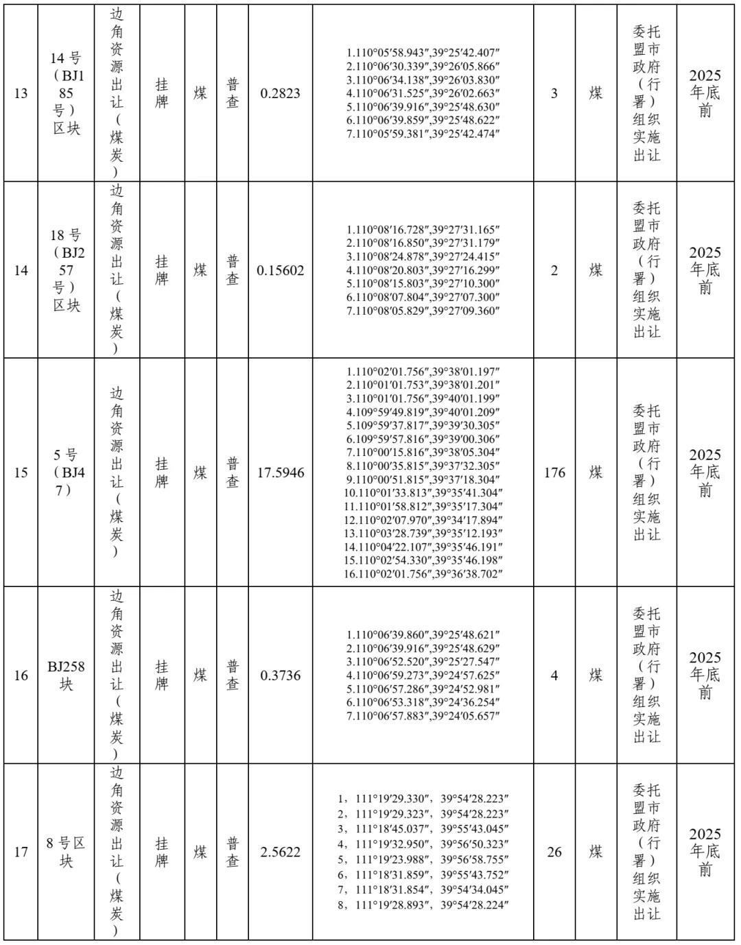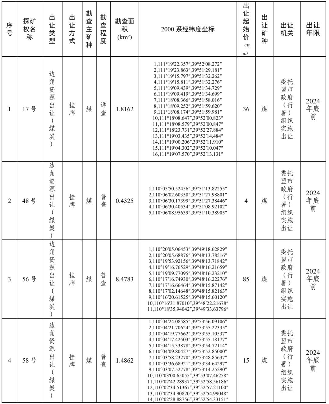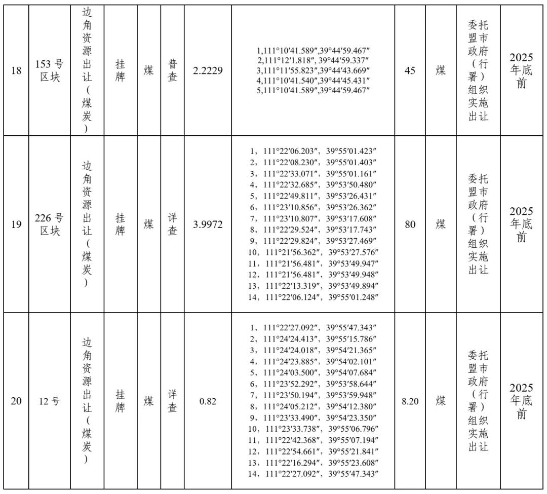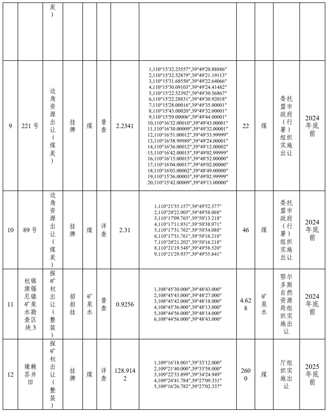 鄂爾多斯市擬市場化出讓礦業(yè)權(quán)情況介紹