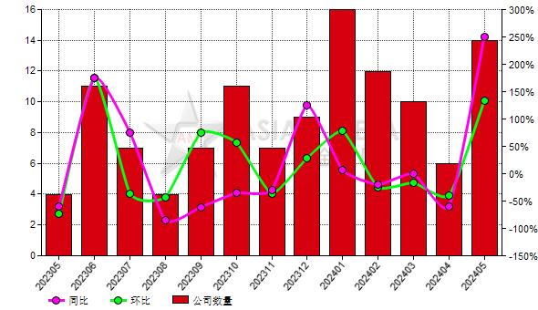 5月份上述14家增產生產商共計生產鎂錠26,300.00公噸,比上月增加5,900.00公噸,平均每家增加421.43公噸。