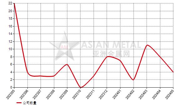 5月份中國共計4家鎂錠生產商減產,上個月為8家,去年同期為22家。5月份減產鎂錠生產商分布為陜西2家,內蒙1家,寧夏1家。