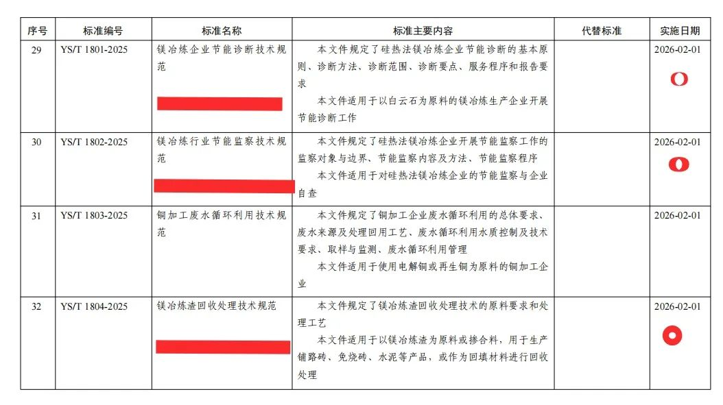 2025年7月8日,工業(yè)和信息化部正式公告批準發(fā)布406項行業(yè)標準,其中三項涉鎂——《鎂冶煉企業(yè)節(jié)能診斷技術(shù)規(guī)范》(YS/T 1801-2025)、《鎂冶煉行業(yè)節(jié)能監(jiān)察技術(shù)規(guī)范》(YS/T 1802-2025)及《鎂冶煉渣回收處理技術(shù)規(guī)范》(YS/T 1804-2025)——由府谷縣鎂工業(yè)協(xié)會牽頭,聯(lián)合府谷多家骨干鎂企及國內(nèi)重點鎂企、頂尖研究機構(gòu)共同編制,并將于2026年2月1日起全面實施。此次獲批的行業(yè)標準填補了我國鎂冶煉領域節(jié)能診斷、監(jiān)察及固廢資源化利用的技術(shù)空白,標志著府谷鎂產(chǎn)業(yè)在綠色低碳、循環(huán)發(fā)展道路上邁出關(guān)鍵一步,也為全國鎂行業(yè)高質(zhì)量發(fā)展樹立了“府谷樣板”。